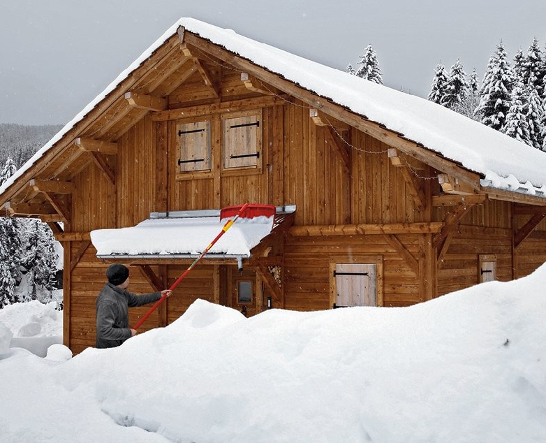 Shrnovač pro úklid sněhu ze střech. Speciální konstrukce shrrnovače a dlouhá teleskopická násada dělá z toho shrnovače ideálního pomocníka pro odklízení sněhu ze střech, zimních zahrad a přístřešků.